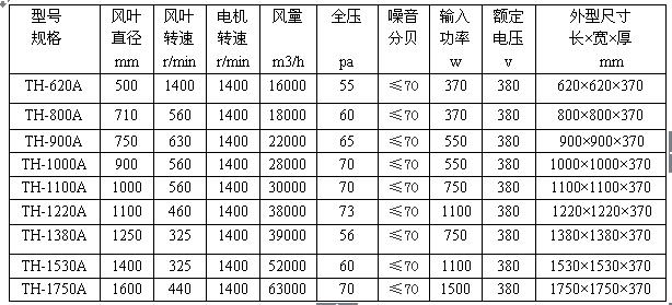 TH-A型雙百頁(yè)式負(fù)壓風(fēng)機(jī)技術(shù)參數(shù):