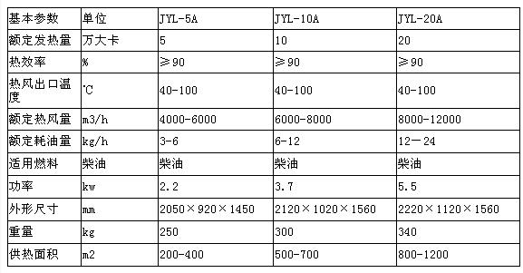 廠房、車間燃油熱風(fēng)機(jī)技術(shù)數(shù)據(jù):