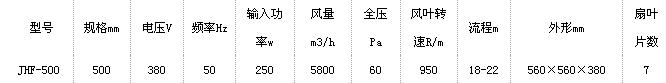 JHF-500型溫室專用環(huán)流風(fēng)機(jī)技術(shù)數(shù)據(jù):